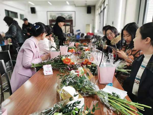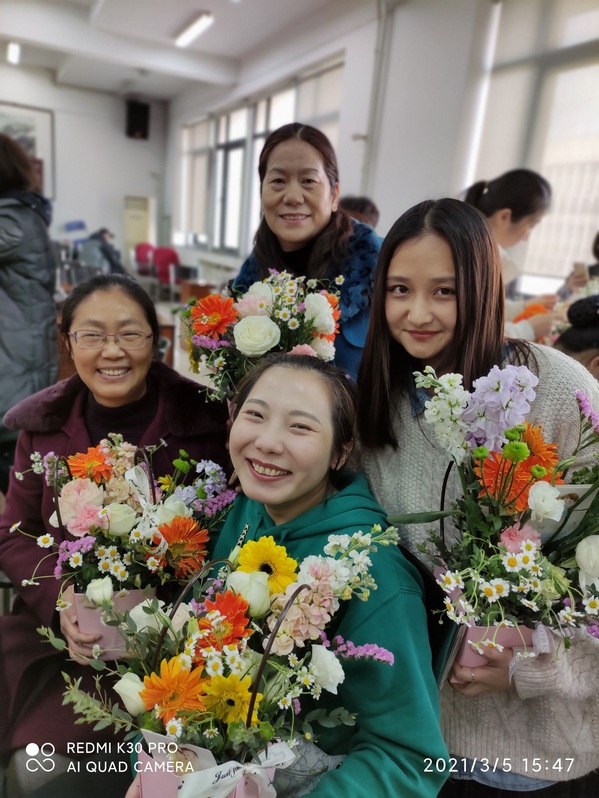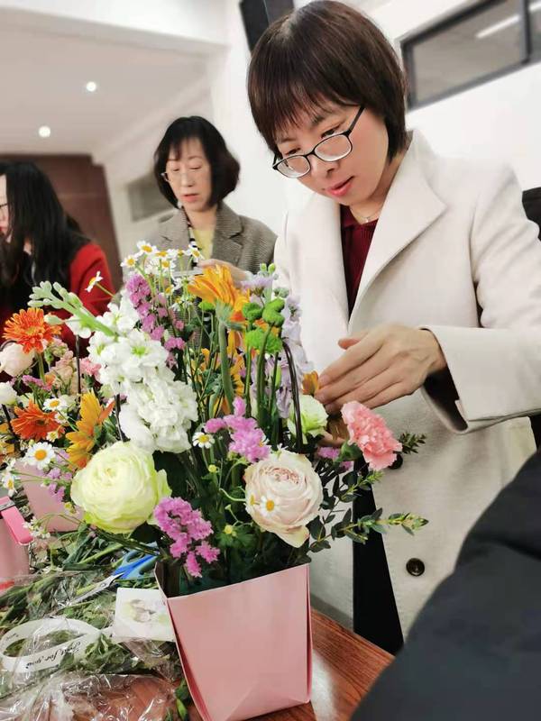 学院祖大庆副院长和蔡可化副院长也来到大家中间,和大家一起赏花,一起切磋。此次插花活动,得到了学院和学院工会的大力支持。校妇委会委员,刘婷婷副院长最后做总结发言,她指出此次活动的举办让大家在快节奏的生活中偶尔放慢脚步,放松心情,展示了自信、积极、向上的新时代女性风采。刘院长祝各位女同胞节日快乐,并鼓励大家以更饱满的热情投身新学期的各项工作中。