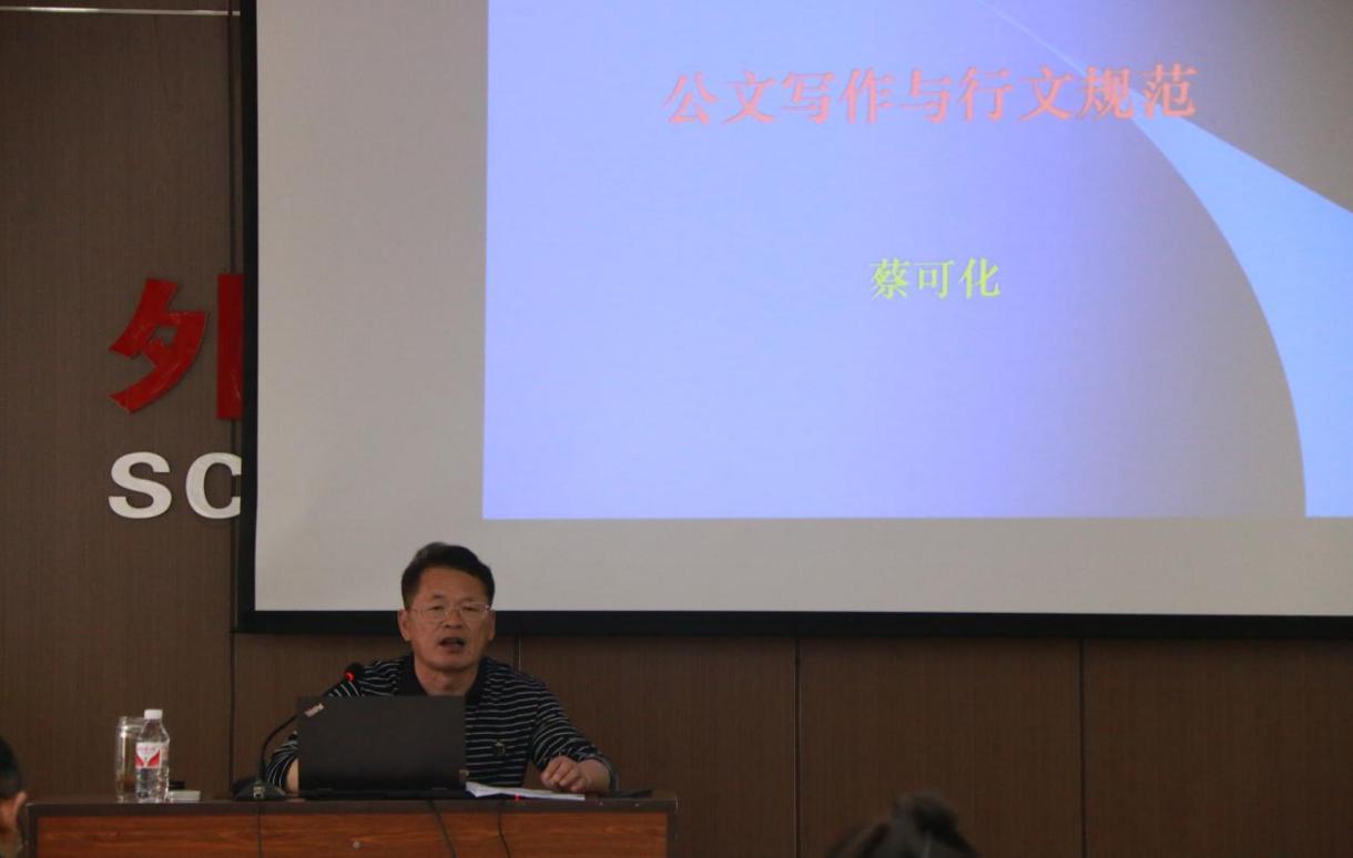 在文科楼B508举行新闻宣传工作业务培训会。学院党委委员、原副院长蔡可化老师作专题讲座。院机关行政人员、各年级专兼职辅导员、院传媒中心和各学生组织宣传工作负责人参加培训会。院党委副书记朱正中主持会议。