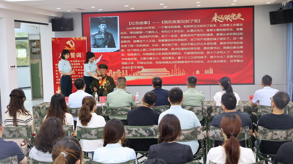 孙金波为大家讲述了战争期间遵守党规党纪夺取革命胜利的红色故事。在抗美援朝战争期间,他始终坚持在一线战斗。1951年10月15日,所在连坚守938.2高地,坚守阵地四夜五天,消灭敌人近两干,全连与阵地共存亡。1953年7月7日,在唐砍里成立担架队配合204师作战,配备人员247名,他担任民工担架队大队长。孙金波把战争故事娓娓道来,还情不自禁地唱起了:雄赳赳,气昂昂,跨过鸭绿江;保和平,卫祖国,就是保家乡。声音铿锵有力,唤醒时代的记忆,激发内心的共鸣。他的革命精神和炽热情怀让在场的党员倍加感动、备受鼓舞,更加增强了爱国爱党情怀。