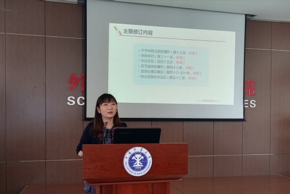 首先,林老师特别强调在开学前两周,同学们要重点关注研究生官方网站和研究生培养管理系统网站,及时查看网站通知及班群消息通知,避免遗漏重要信息耽误毕业。同时,做好导师双选工作,同导师商量后制定个人培养计划和选课规划。其次,林老师向同学们具体介绍了培养管理规定、学籍管理规定和学位管理规定,从研究生创新计划项目、培养学分构成、课程学习、科研素质、创新能力和专业实践等多个环节向同学们详细阐明,鼓励同学们多多参与研究生创新项目,积极参加创新比赛和学术会议,踊跃发言锻炼自我积累经验,并提醒同学们认真对待平时作业和考试,避免挂科,同时督促新生同学尽快完成学籍注册。