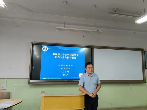 随后,王会娟老师主要从学科领域、研究方向、培养目标、学制和课程设置等方面对翻译硕士专业学位研究生培养方案进行了分析与解读,列举往届学生出现的问题,提醒同学们要引以为戒,并对同学们提出的疑惑进行了解答。同时,建议翻译硕士研究生多做翻译实践,拓宽翻译领域,寻找适合自己的翻译方向。此外,她鼓励同学们要相互交流,凝聚班级力量,形成良好的班风。最后,王老师告诫同学们对待学习要端正学习态度,注意学术规范,并希望各位同学们能够尽快适应学校生活,尽快投入学习中去。其间,林妍老师也对创新学分的获取进行了讲解。