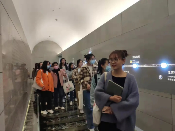 同学们怀揣着敬畏之心,在研究生辅导员郭璐璐老师的组织下有序地进入校史馆。讲解员绘声绘色地为新生们讲述了矿大的“前世今生”。泛黄的教材、氧化的发电机,种种史料无一不展示了矿大百十年的不平凡历程。十二次易名、十四次搬迁的历史让同学们感受到如今的校园生活得来不易,须得备加珍惜;一件件器物印着先辈们的奋斗痕迹,映射出矿大办学的艰辛历程;校友们的骄人成就也激起了同学们争做时代先锋的抱负。
