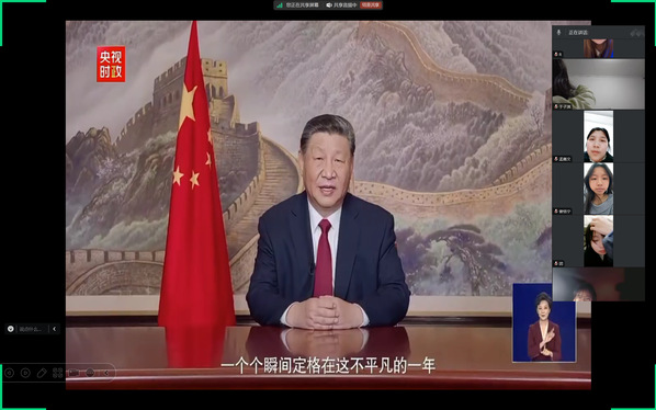 同学们聆听新年贺词