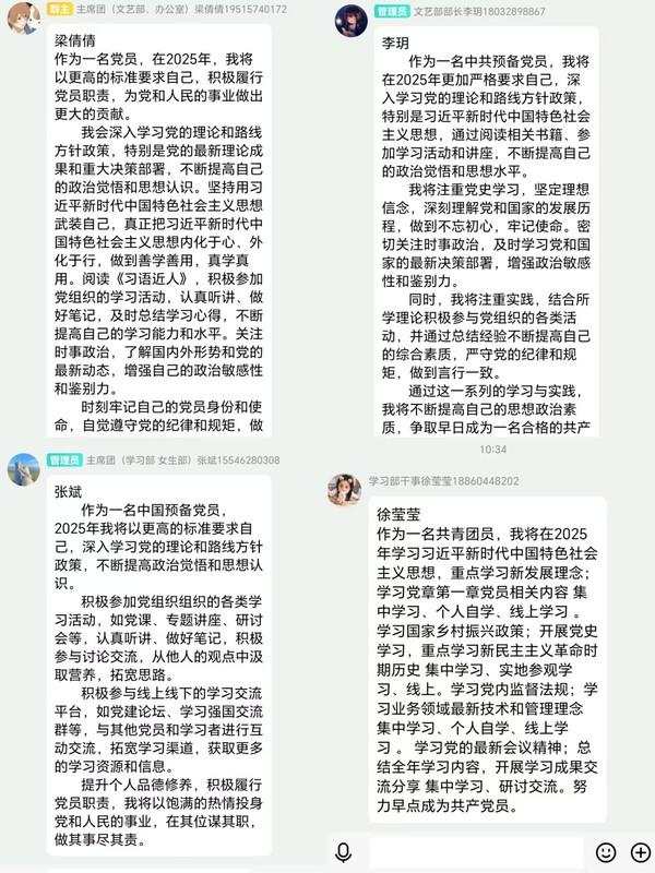 青年心向党,理论促担当。本次理论学习主要围绕“国家主席习近平发表二〇二五年新年贺词”和“筹划2025年度学习计划”两个主题开展,让同学们了解了我国发展现状以及在集成电路、人工智能、量子通信等领域取得的新成果,以及未来我国将如何积极应对国内外环境变化带来的影响,持续推动新型城镇化和乡村振兴相互融合、同频共振,绿色低碳发展纵深推进。响应国家2025年全面完成的“十四五”规划的号召,同学们在学习了习近平主席的加规划后也对自己2025年的学习做出了计划,力求努力提高自己。