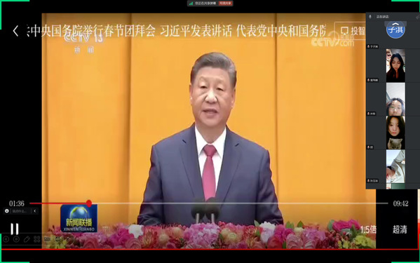 同学们聆听习近平总书记在春节团拜会上的讲话
