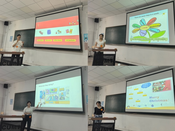 随后举行了“蒲公英计划——乡村公益外语课堂微课比赛”,朱静、尹建胜、张洋、闫瑾,学院英文系主任唐书哲担任评委。经初选进入复赛的11位选手依次进行现场教学展示。经过三个小时的精彩角逐,选手们展现出扎实的专业功底和良好的教学素养,现场表现获得评委一致好评。唐书哲老师做比赛点评。他对选手们的精心准备、生动设计、教学热情、专业素养等表示肯定,同时指出应根据学龄段特点合理设置知识点、结合场景丰富教学手段等方面的不足。江苏师范大学科文学院外语系部分师生进行了现场观摩。