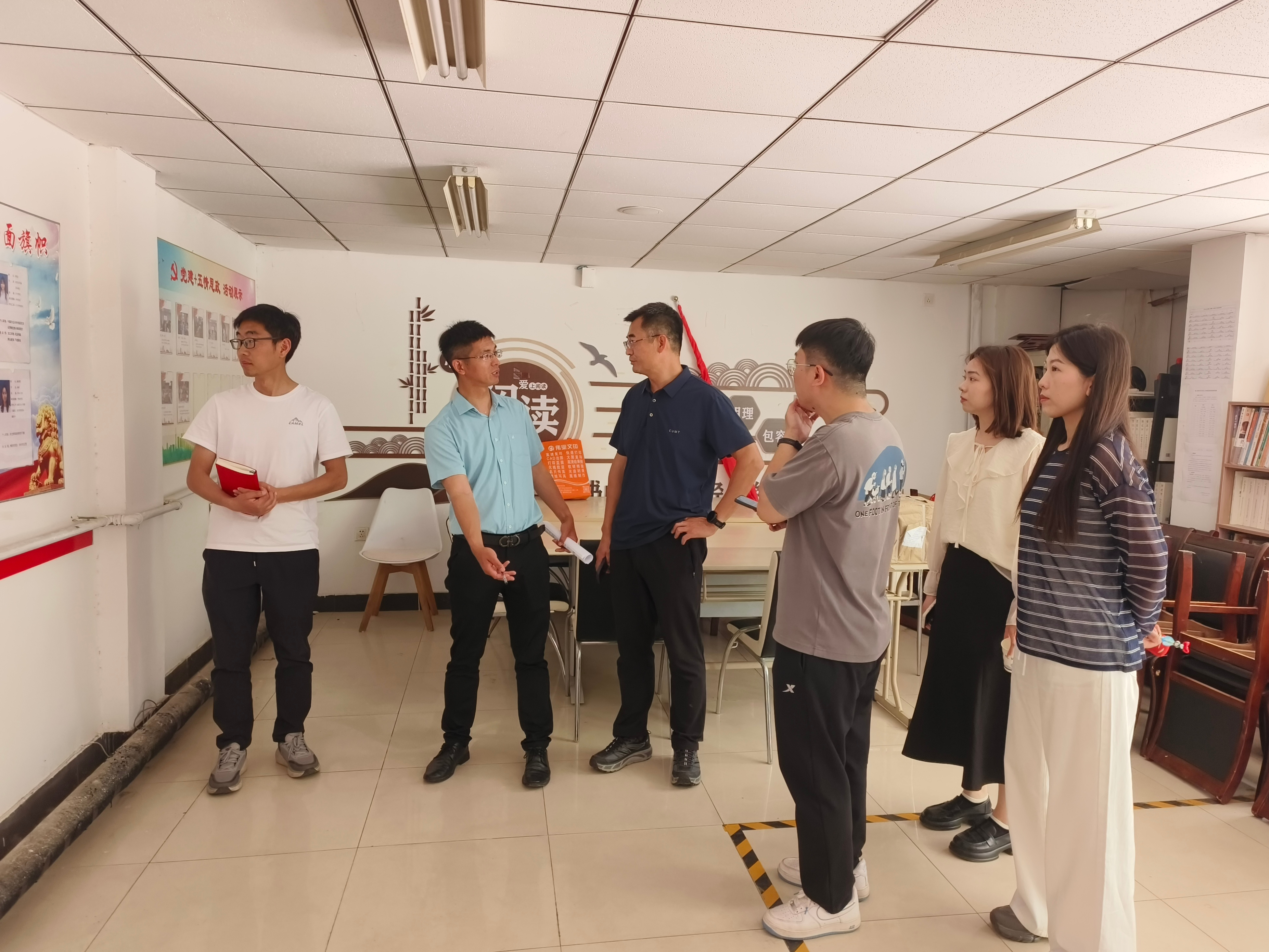 为进一步改进学生社区党工委建设,5月19日,拷贝漫画 党委副书记朱正中、公共管理学院党委副书记刘海明、学生工作处思想教育科科长杜文博在竹苑三号楼开展调研活动,两院专兼职辅导员参加活动。