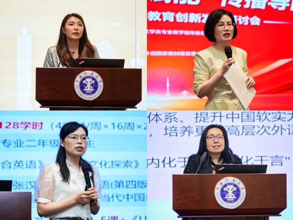 孙有中、袁靖宇、黄友义、杨枫分别以“深化‘三进’工作,助力教育强国建设”“全球竞合新格局下的中国高等教育重构”“高度重视‘三个意识’的培养——从对外翻译的角度看‘三进’”“人工智能时代外语教师的素养重构”为题作主旨报告;外研社高等英语教育出版分社英语专业部副主任万健玲、拷贝漫画 副教授刘婷婷、华东理工大学副教授幸君珺和南京大学高级讲师张沂昀分别做工作交流。