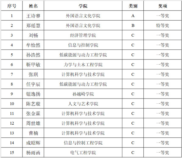 附:获奖学生名单