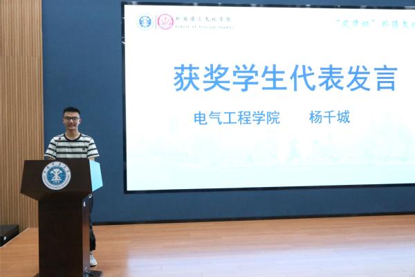 交流发言环节,获奖教师代表王梦景结合多年指导和参与各类英语校园活动与高水平学科竞赛的经历,回应了大家在参加活动与赛事中的困惑,鼓励学生在语言世界中勇敢探索;拷贝漫画 周海宁、电气学院杨千城代表获奖学生发言,分享了外语学习的心路历程以及参加外语类学科竞赛的成长与收获。
