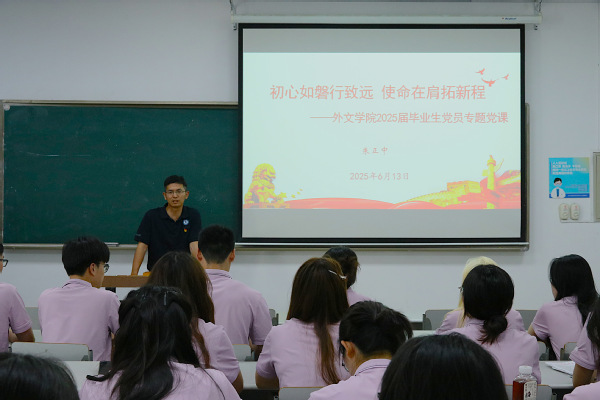 为进一步加强毕业生党员教育管理,6月13日下午,学院在B319教室举行2025届毕业生党员专题党课。院党委副书记朱正中讲授党课。