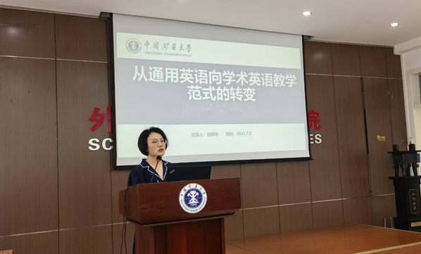 刘婷婷副院长作了题为“从通用英语向学术英语教学范式的转变”的学术报告,着重探讨了学术英语能力对学生专业学习、科研创新及国际交流的支撑作用,并结合教学实践,分享了学术英语课程体系重构、师资能力提升、评估方式革新等方面的具体路径。报告为深化大学外语教学改革提供了富有启发性的新视角和切实可行的行动方案,为下一步学术英语课程的开展提供了重要指导。