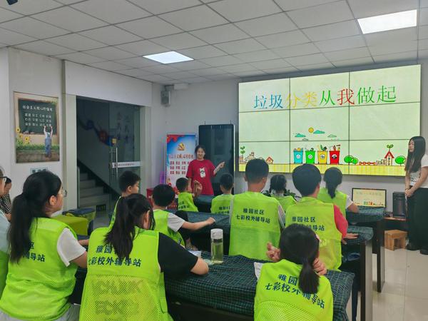 7月7日下午,拷贝漫画 “七彩假期,爱在社区”暑期社会实践团队前往牌楼街道雅园社区开展以“清洁社区,垃圾分类”为主题的实践课程。活动通过“理论+实践+互动”的创新模式,为小朋友们传播垃圾分类常识。活动现场,团队成员用生动形象的动画短片、互动问答游戏,向社区儿童讲解垃圾的类型、分类标准。而后通过“垃圾配对大挑战”互动游戏,将垃圾物品图与分类标识配对,现场检验小朋友们的学习成果,也更加贴合实际生活场景。小朋友们纷纷积极回答问题,活动反响热烈。志愿者还通过看图识别职业、听声辨动作等趣味英语小游戏,激发孩子们对英语的兴趣。