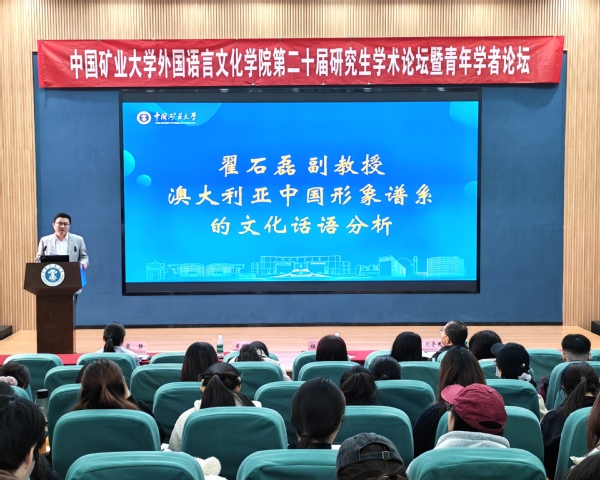 主旨报告环节,翟石磊作题为“澳大利亚中国形象谱系的文化话语分析”的报告。他以澳大利亚为研究主体、中国形象谱系为核心对象、文化话语分析为方法,解析19世纪中期以来澳大利亚的中国形象演变,揭示国家形象建构背后的话语操控逻辑。报告还以该话题为样本,展示了区域国别视域下融合语言、文化、传播与国际关系的跨学科研究路径。他强调,人文社科研究需紧扣国家策略,扎根实际,实现熔铸古今、融通中外。