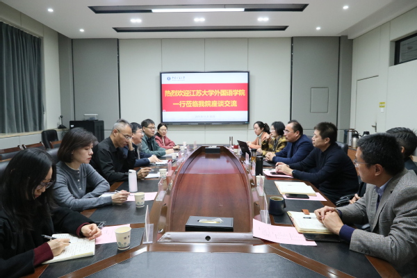 11月20日下午,江苏大学外国语学院党委书记张明平、院长李崇月一行来院调研交流。学院党委书记张向东、院长祖大庆等班子成员及部分系部主任参加座谈。
