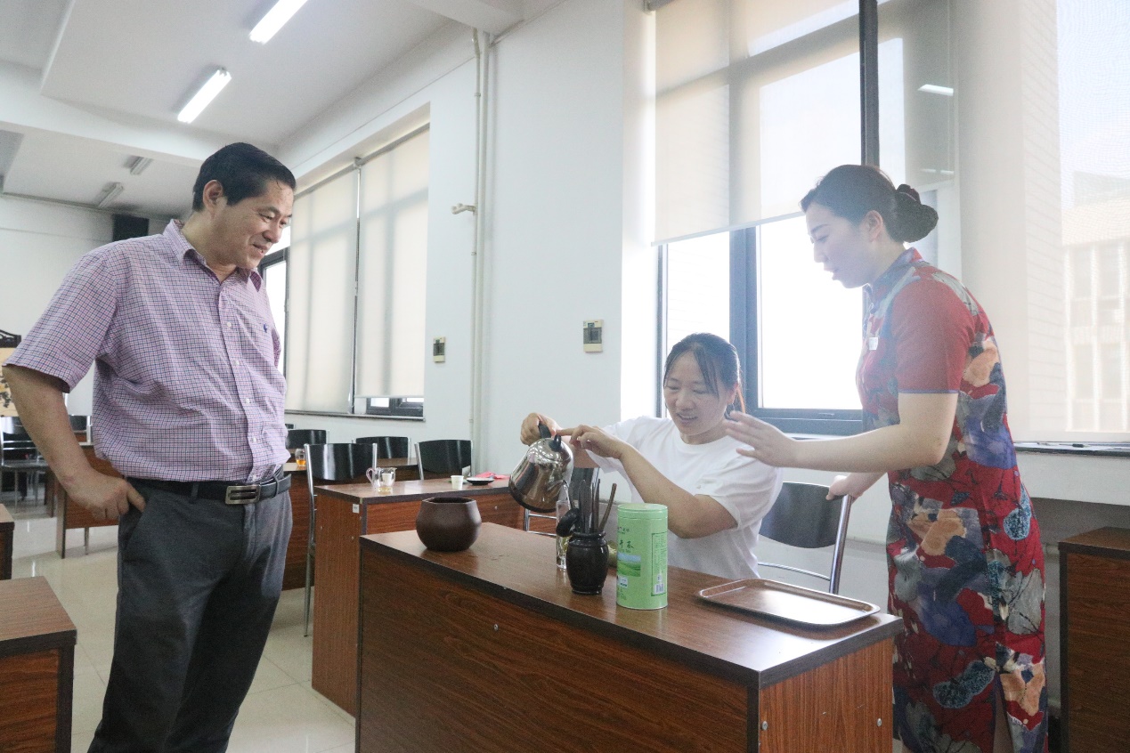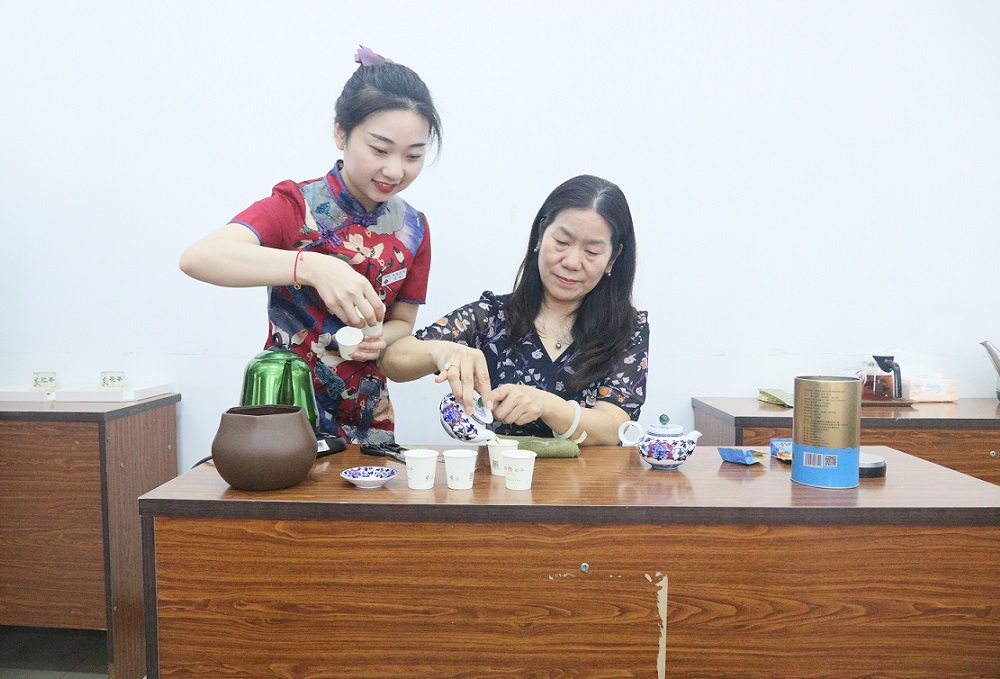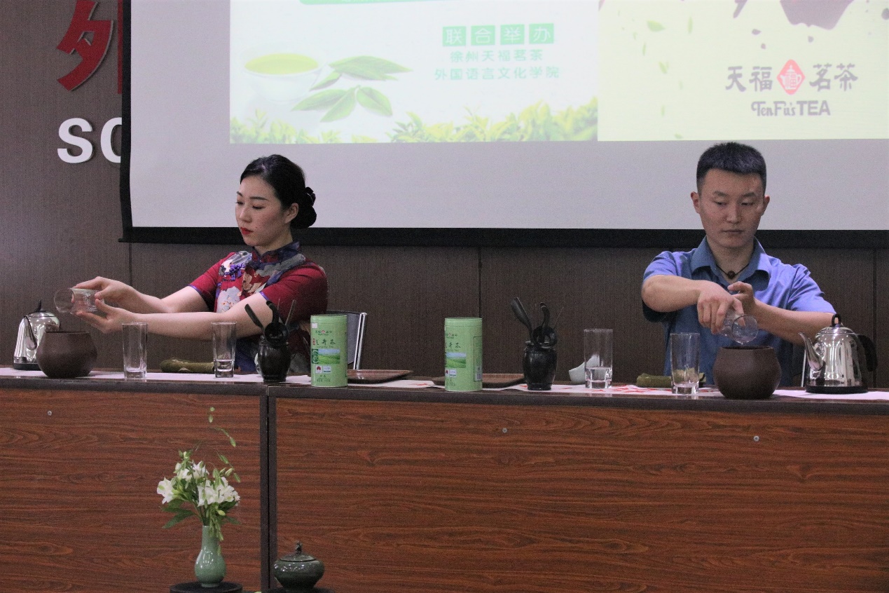 “茶”始于神农,兴于唐,盛于宋,传承数千年,早已融入人们的日常生活。茶文化繁花似锦,作为国粹,我们更应了解茶文化发展历史及茶叶知识。本次活动,天福茗茶的茶艺专家向教职工展示了“烟雨江南 龙井飘香”的茶艺表演,并为大家介绍了茶叶的种类、区别以及不同的人群和季节适合的茶叶类型。现场既有专家讲座讲授茶文化知识,又有猜茶互动、试泡品尝等互动环节,让老师们在茶艺师的指导下亲手泡上一盏茶汤,从闻香品茗中学习探讨茶道的文化与技巧,感受艺术与生活。