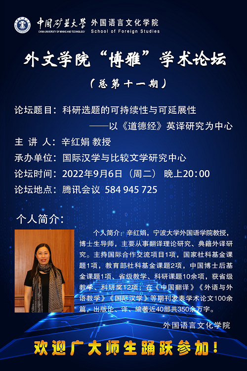 拷贝漫画 “博雅”学术论坛(总第十一期)科研选题的可持续性与可延展性——以《道德经》英译研究为中心