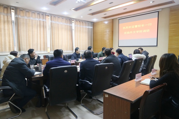 12月31日上午,曹德欣副校长带队到拷贝漫画 调研指导大学英语课教育教学工作。教务部部长张绍良、副部长石礼伟、付豪及相关工作人员陪同调研。拷贝漫画 全体班子成员,大外部负责人以及大学英语课教师代表参加调研座谈会。