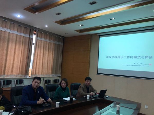 此次会议,学院还邀请到了孙越崎学院党委副书记兼副院长吴从新向与会教师分享其在课程思政建设方面的经验和感悟。吴从新书记从自己课程思政项目建设的过程出发,向与会老师展示了课程思政建设的思路、遇到过的困难及解决方法。吴书记表示,课程思政建设的着力点在于对中央精神的把握,希望各位老师研习国家精神,挖掘课程思政元素的基本依据,并在此过程中形成个人课程思政建设的模式和框架。课程思政建设要真正做到将课程建设和育人目标充分“融合”,“思政元素对课程润物无声的渗透也是美学效果的整合,它将磨钝单向输出知识生硬的棱角,使启发教学变得行云流水,学习效果达成理与情、行与意的交融”。