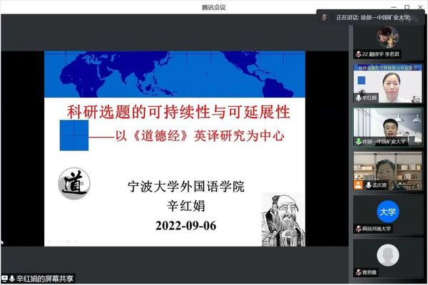 9月6日晚8点,拷贝漫画 “博雅”学术论坛第十一期通过腾讯会议成功举行。该论坛由国际汉学与比较文学研究中心主办,邀请宁波大学外国语学院的辛红娟教授做了题为“科研选题的可持续性与可延展性——以《道德经》英译研究为中心”的讲座。本次论坛由徐剑院长主持,祖大庆副院长以及学院部分师生190余人共同参与。