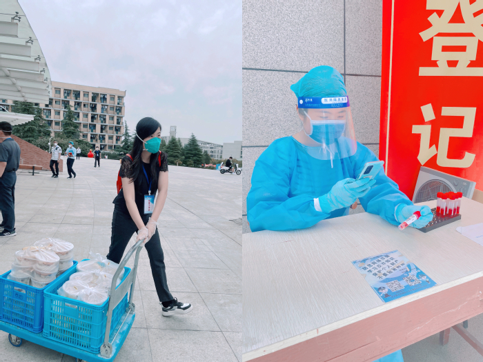 刘洋老师时刻以党员标准严格要求自己,她说“作为一名教师支部书记,更要在关键时刻亮出党员身份,为支部党员做表率”。自新冠疫情爆发以来,刘洋老师一直用实际行动践行党员使命。她积极报名,投身核酸检测志愿服务,与医务工作者并肩作战,烈日炎炎,汗水浸湿了衣服,但她毫无怨言,刘洋老师说“只要有需要,我随时可以”。2022年9月,学校因疫情进入封闭管理,刘洋老师又主动请缨,报名校园抗疫志愿者进驻校内,把两个孩子留在家中,舍小家,为大家,义无反顾奔向校园疫情防控第一线,承担起宿舍楼一日三餐及防疫物资配送工作。在承担繁重的体力工作的同时,她还用心做好线上教学,以作为志愿者的视角融入课堂教学,引导学生对疫情防控进行思考,以实际行动上了一堂生动的“思政课”。同时刘老师还心系在校学生,远程关怀慰问学生,及时关注学生心理状态,为学生们缓解压力,努力做好学生的心理抚慰和舆论引导工作。遇到学生有突发需校外打针的情况,刘老师主动驾车陪同就医。从“三尺讲台”到“抗疫一线”,刘老师身上闪耀着的是共产党员不畏艰难、迎刃而上的精神。刘洋老师说“能够为学校抗疫贡献出自己的微薄之力,是她义不容辞的责任和无限荣光。”