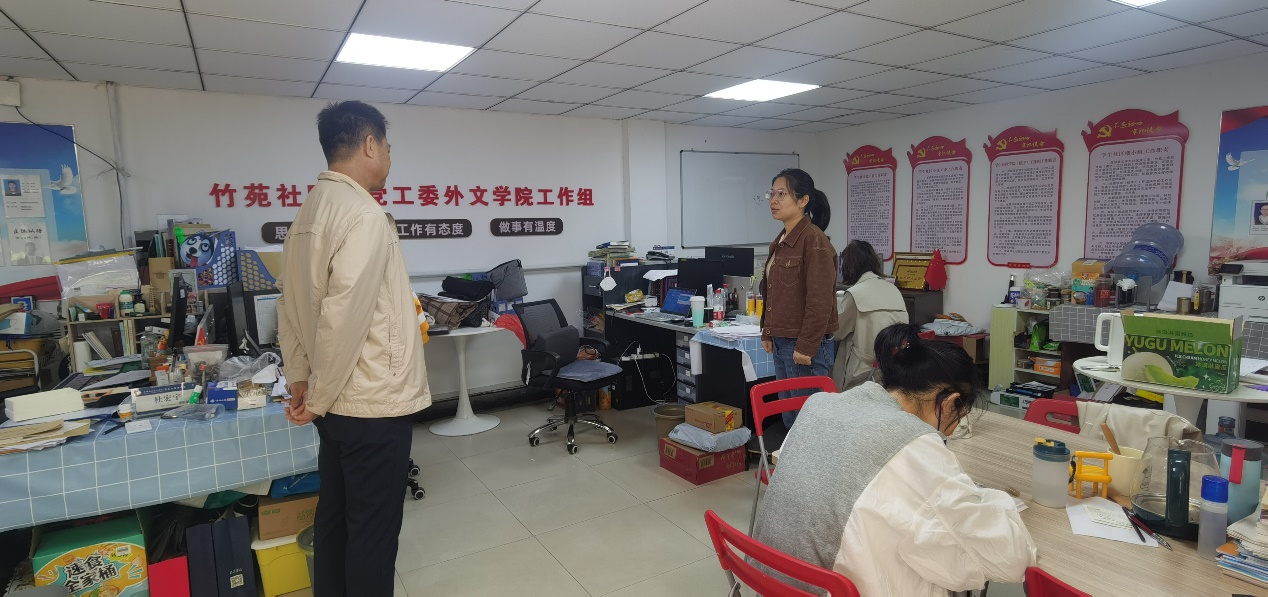 2023年4月28日,为保障五一节假期学院的安全工作,院党委书记张向东带队对竹三党工委和实验室进行了安全检查。