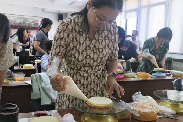 随着刘院长邀请烘焙师傅进行现场演示,老师们都摩拳擦掌、跃跃欲试,通过仔细观摩烘焙师傅的制作过程,充分发挥想象力和动手能力,大家都制作出了独一无二的美丽蛋糕。在香气四溢的现场,大家放松身心,互相交流,既体会了烘培的乐趣,又感受到了学院集体的温暖,度过了轻松愉快的下午时光。
