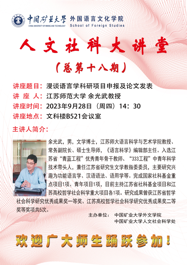 人文社科大讲堂 (总第十八期) 漫谈语言学科研项目申报及论文发表
