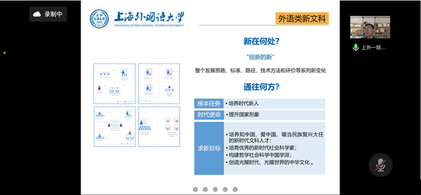 9月26日晚,上海外国语大学德语系主任、德国教育科学信息政策研究中心主任、中德人文交流研究中心主任、教育部外国语言文学教学指导委员会德语专业委员会副主任委员陈壮鹰教授应拷贝漫画 德语系邀请,以“新文科模式下的德语双学位人才培养模式探索”为主题进行了在线研讨,与德语系全体教师进行了深入交流。此次报告是德语系江苏省一流本科专业建设系列活动之一。